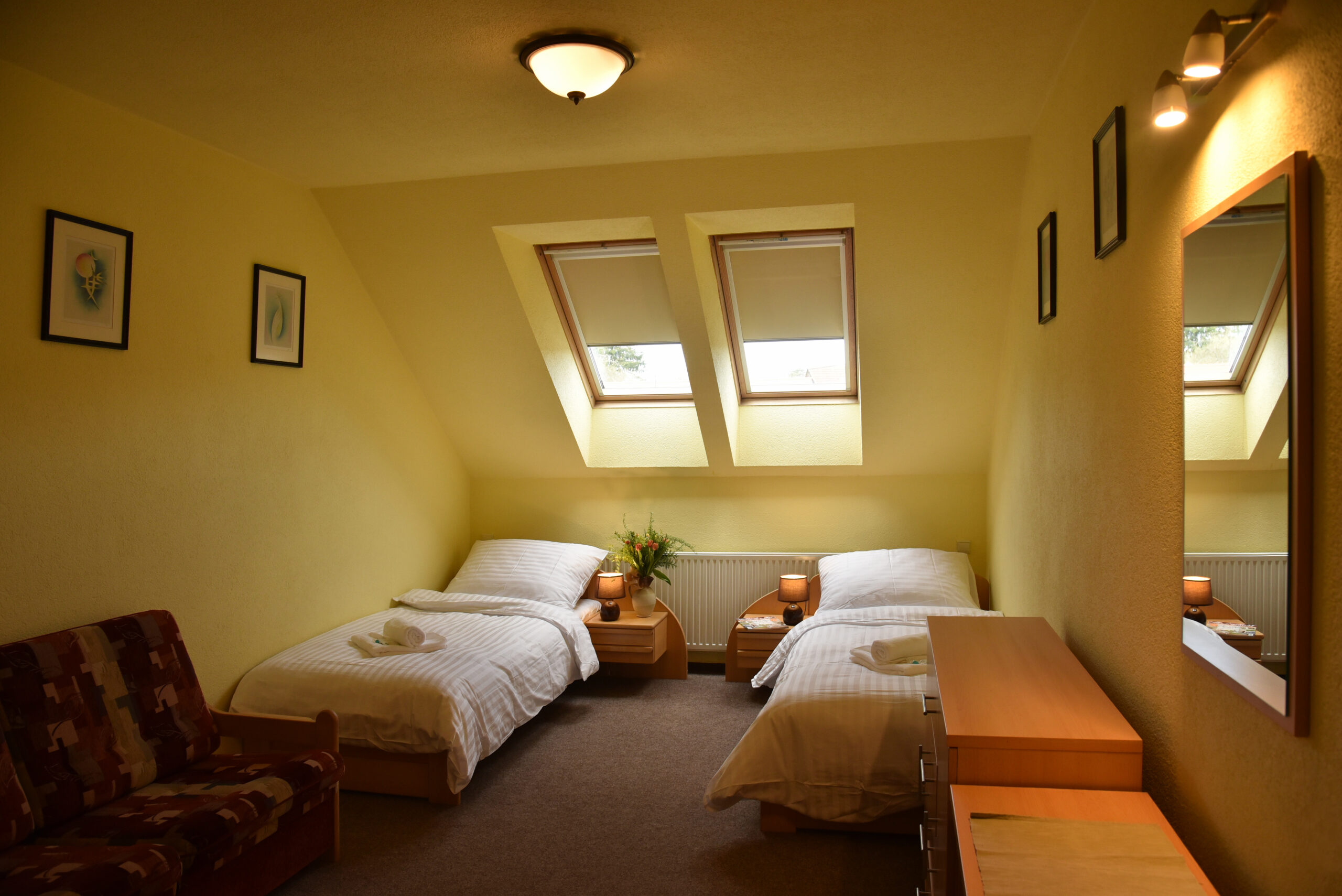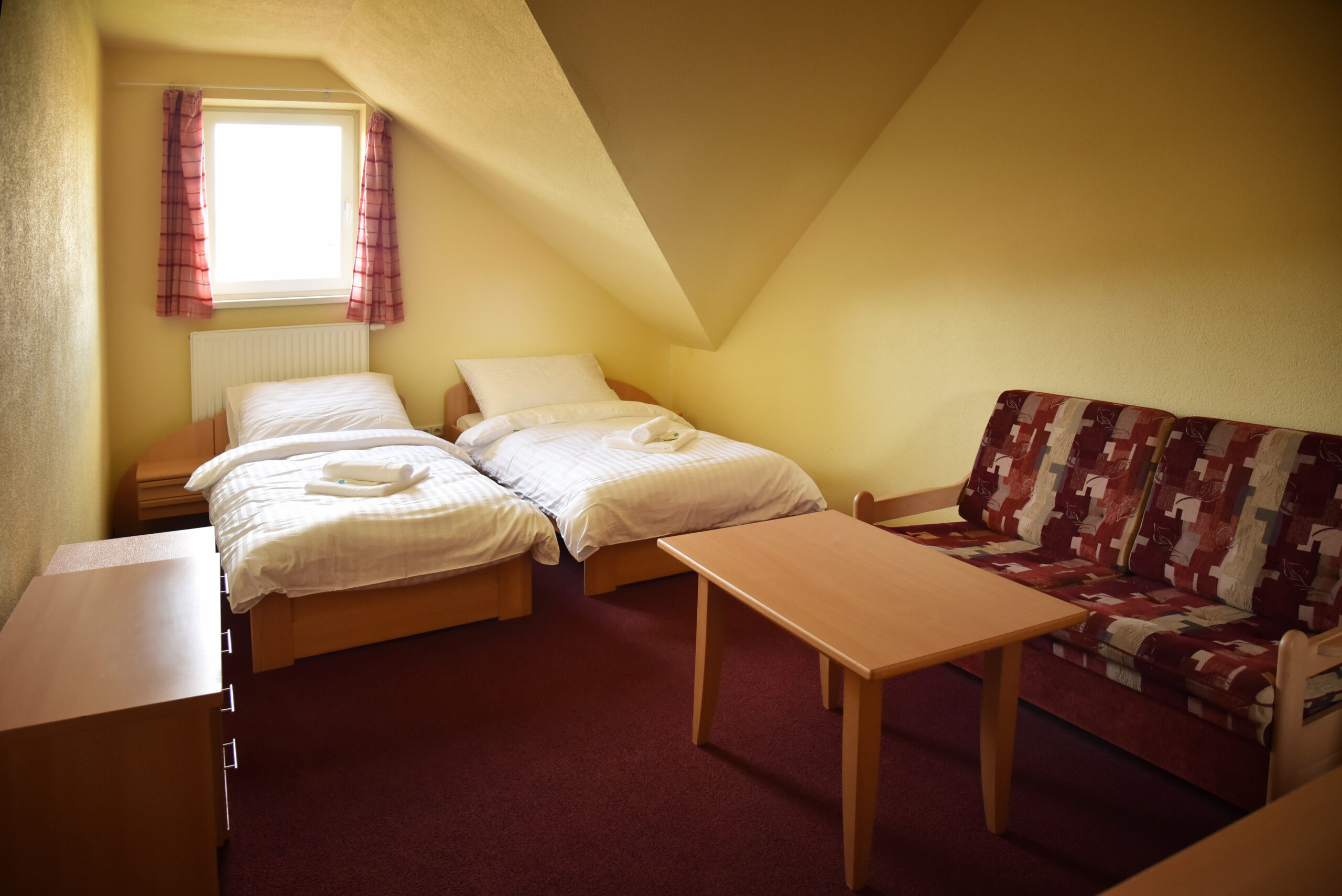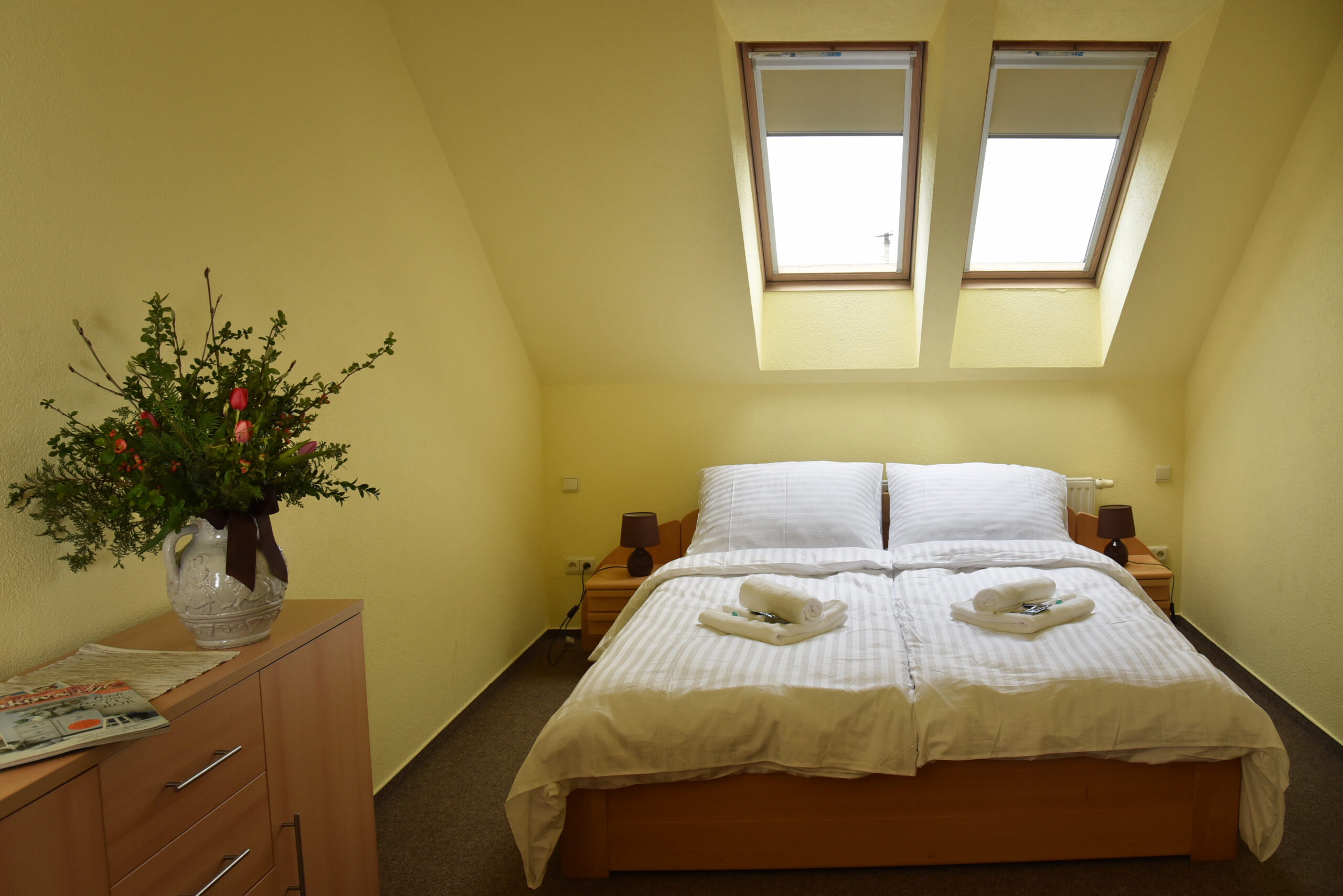 místnost 1: 1x manželská postel + (možnost 1x přistýlka)
